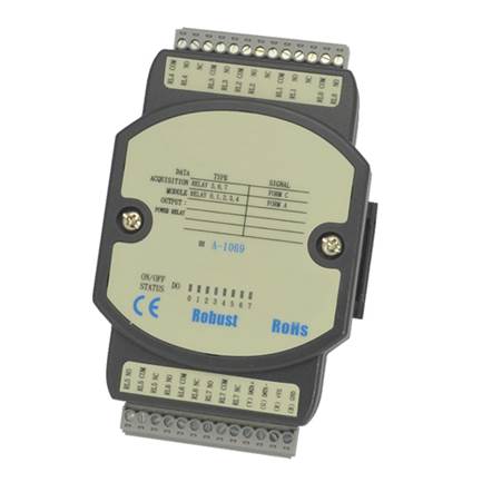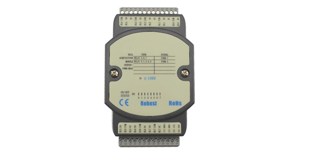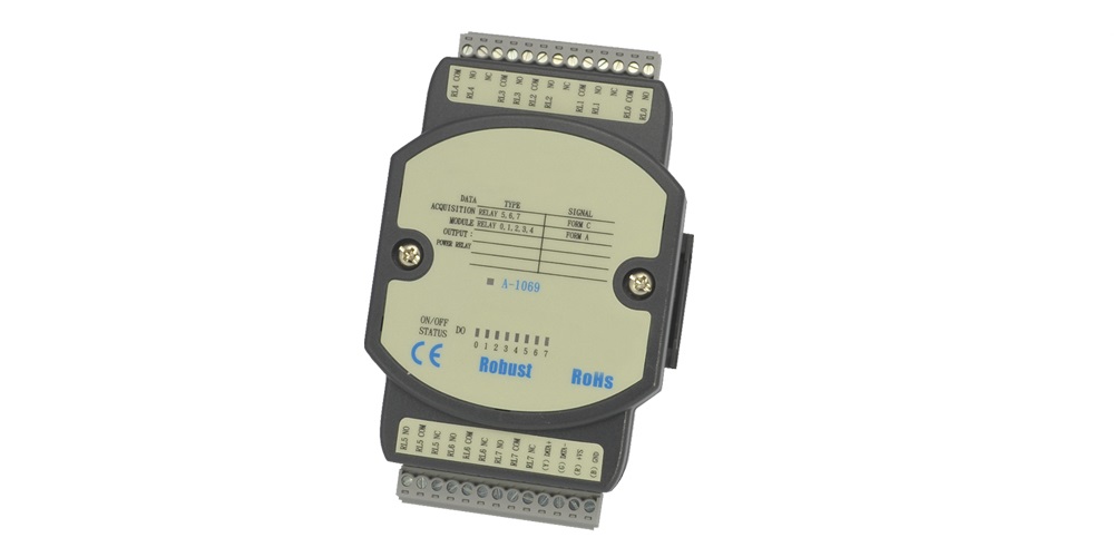 Remote RS-485 I/O module, support Modbus RTU/ASCII protocol, with 8 Relay Output. It can communicate with other