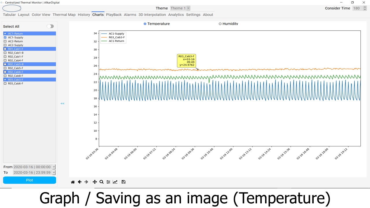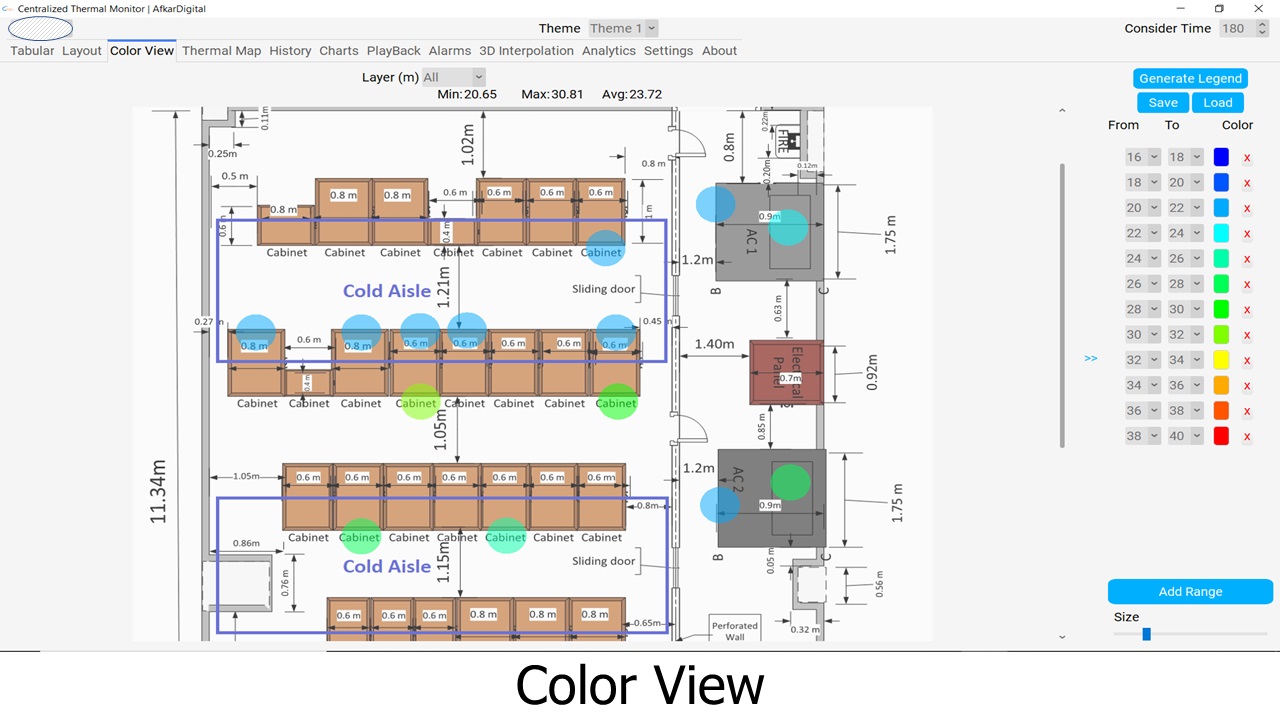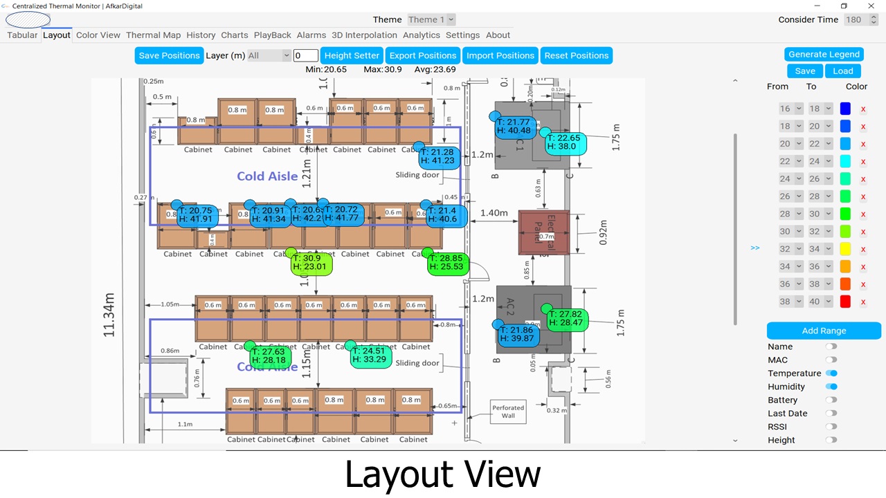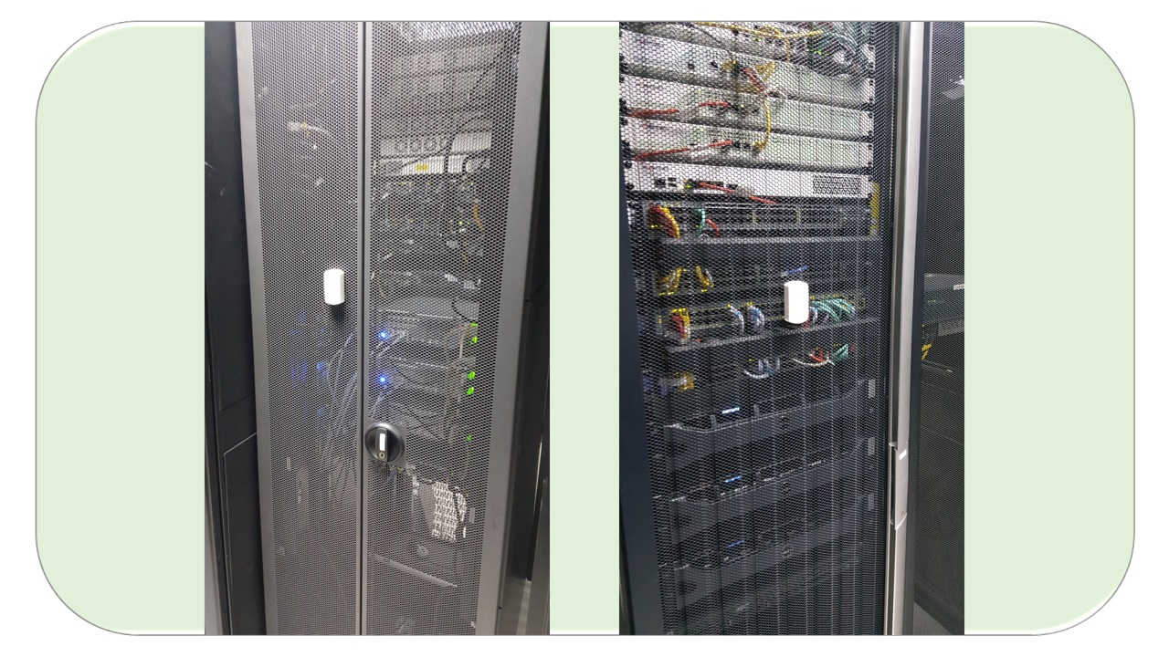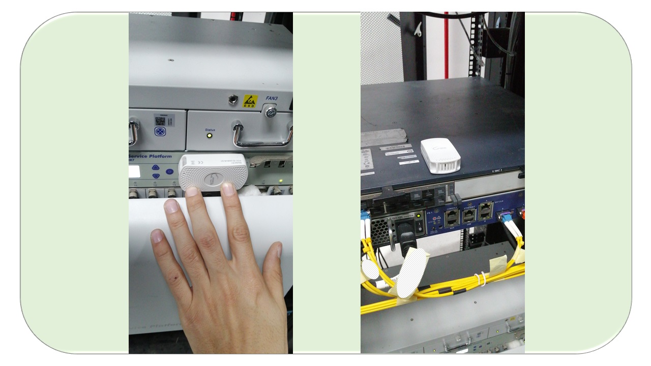 Due to the small size and battery-operation, the sensor can be easily mounted at cabinet front, cabinet back, AC supply, AC return, or at any desired point. This gives an advantage over legacy systems which use wired sensors, and once mounted it would be difficult to relocate due to the installed wires.