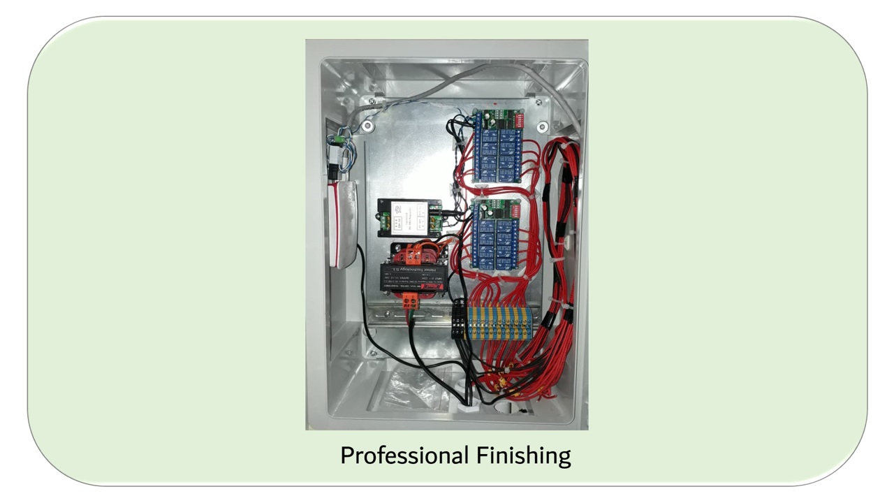The device and the electrical valves all operate on 12V to avoid any electrical hazards