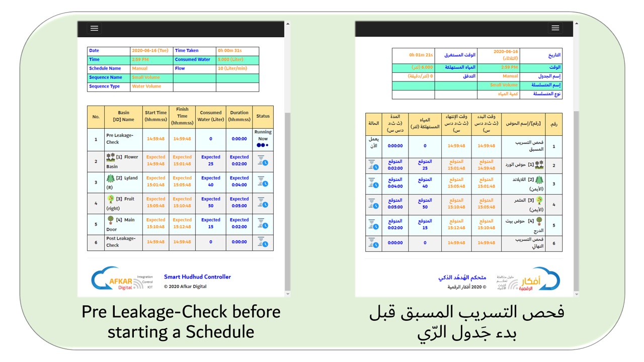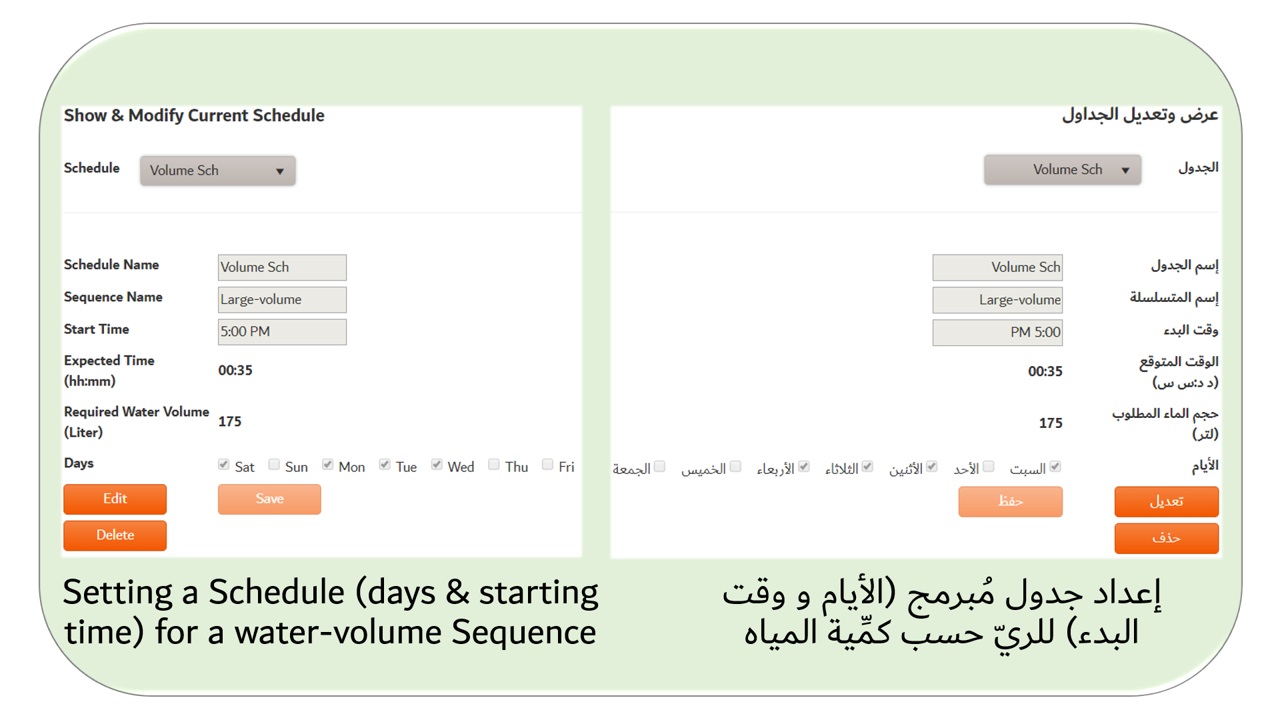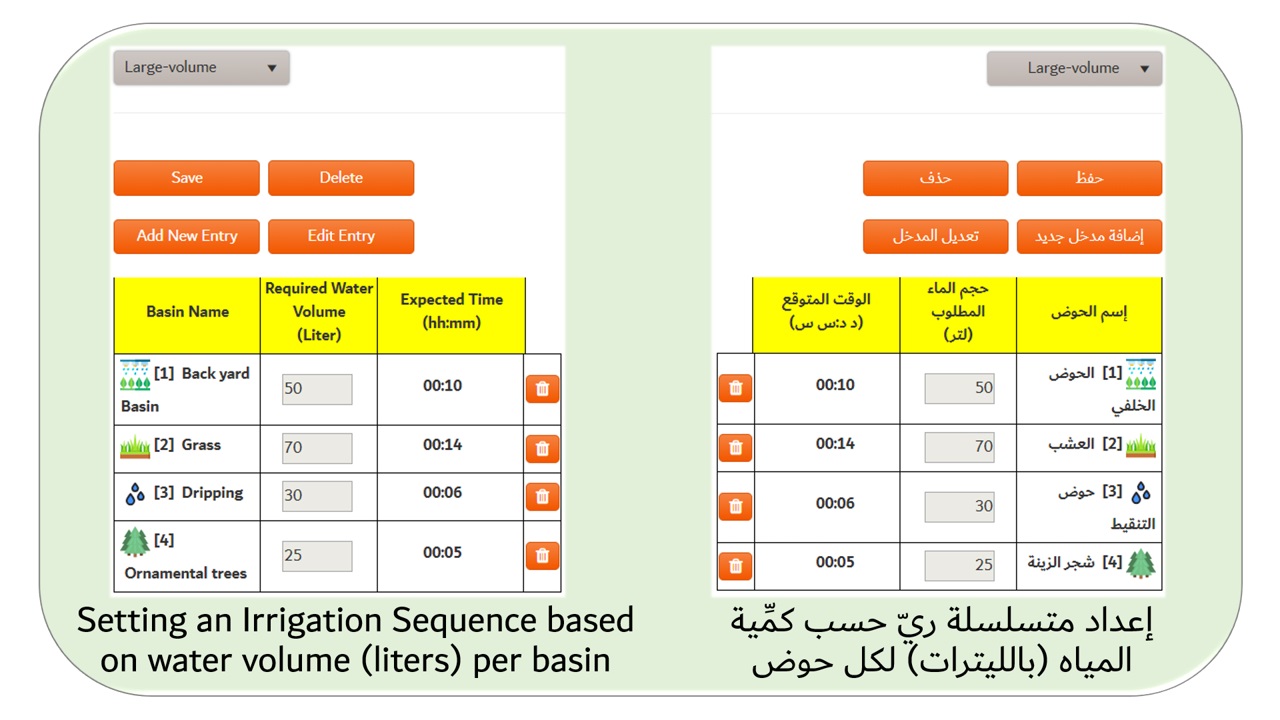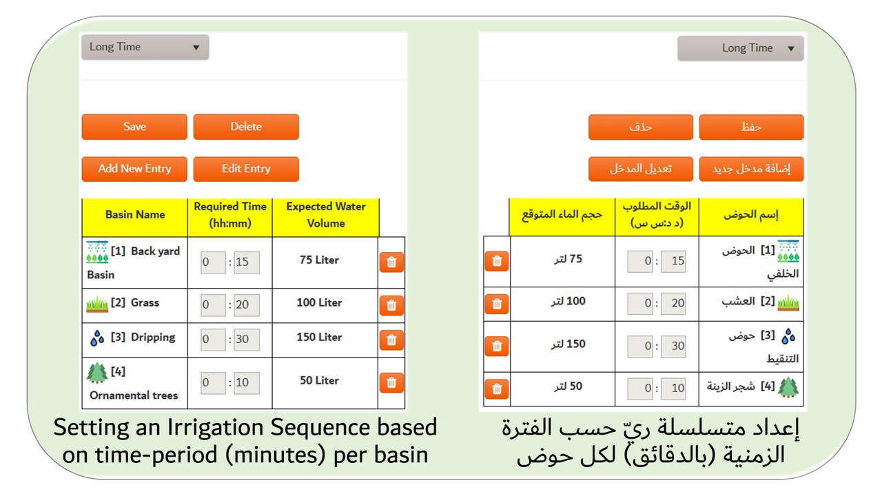 Setting Schedule per basin based on Water Volume (liters) or Time-period (minutes)