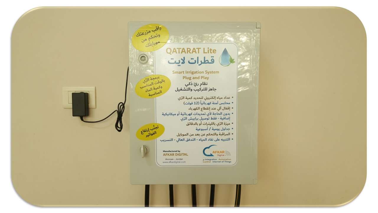 QATARAT Lite is a mini version of our product QATARAT. A Smart Compact Design comprising an irrigation controller, four electrical valves, a water meter, and with pump control. In addition to the most important feature, that is, monitoring and control over the internet.