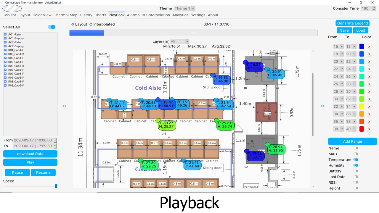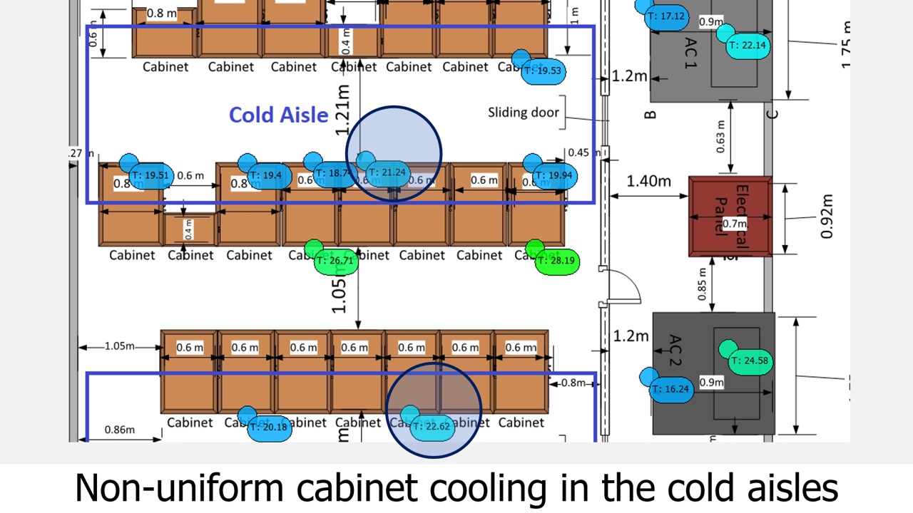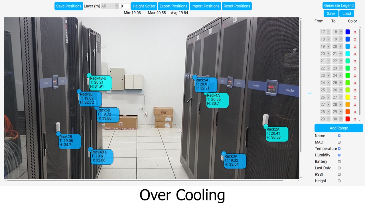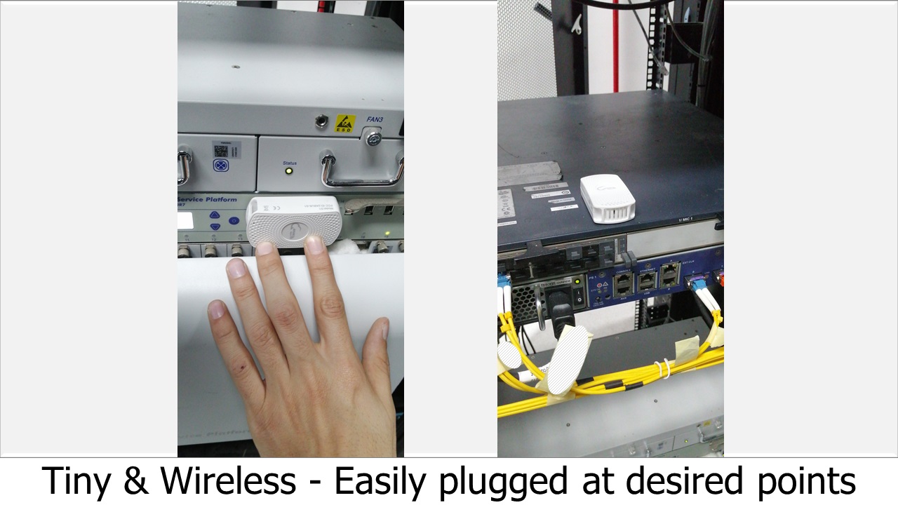 Unlike other wired systems, our Wireless Thermal Monitoring & Commissioning Tool uses wireless Plug-n-Sense small-size temperature & humidity sensors. The sensors can be easily mounted at cabinet front, cabinet back, AC supply, AC return, over any shelve or rack, or at any desired point, inside a refrigerator or even onside a freezer. This flexibility enables better Auditing and Validation, and in turn better Optimization of the thermal distribution inside critical places such as Data Centers, Medicine Warehouses, Food Storage Rooms, etc. The thermal measurements are uploaded to a local PC or over the internet to the cloud. Legacy systems monitor the temperature at few points using wired sensors, and once mounted it is difficult to relocate due to the installed wires. The beauty of our solution is that it gathers real measurements from wireless sensors which are mounted at the desired points. No simulations.
