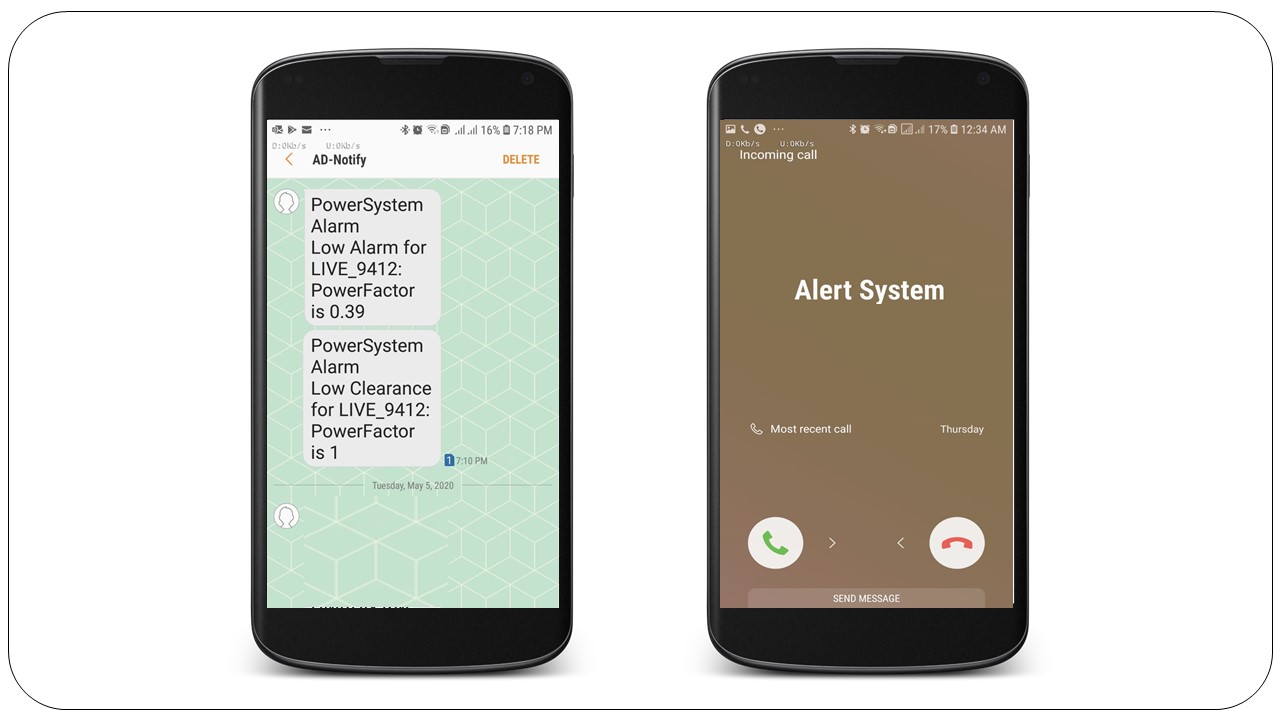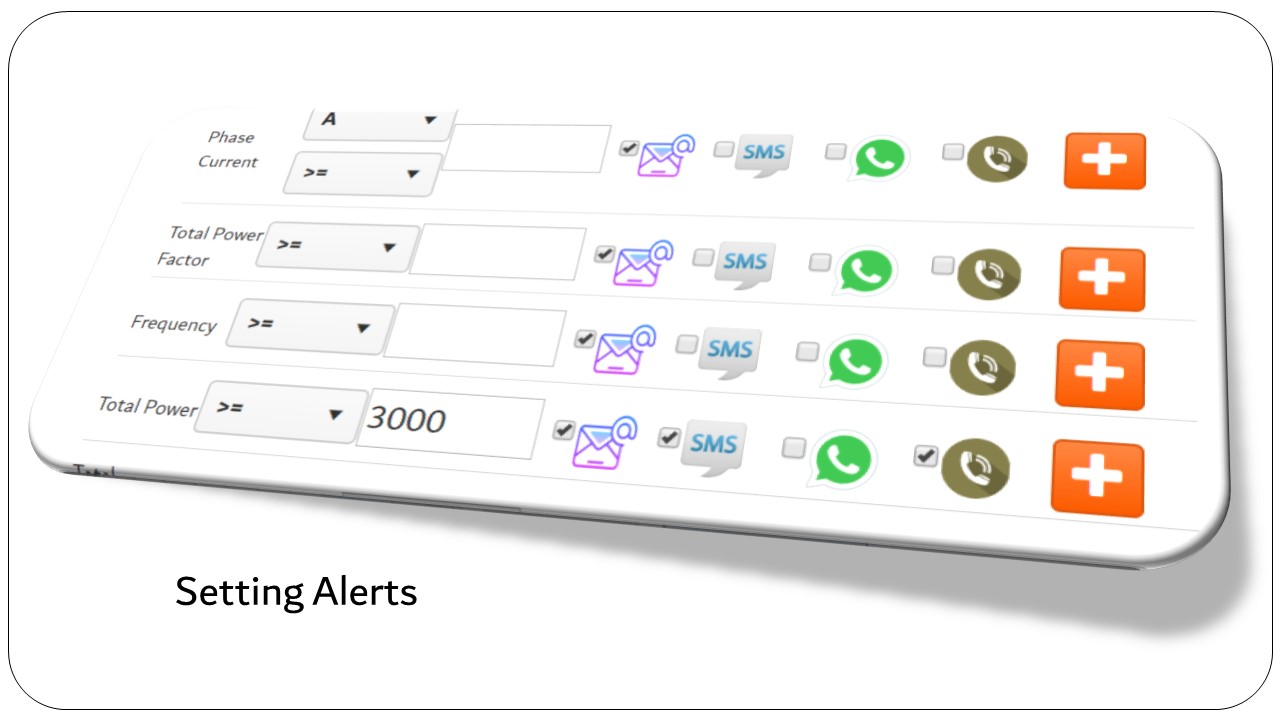 The Advanced can issue alerts for high/low Voltage, high/low Current, high/low Power, low PF, and high Energy Usage (kW.h). The Advanced can send these alerts over emails, SMS Messages, or Phone Calls as per your preferred settings.