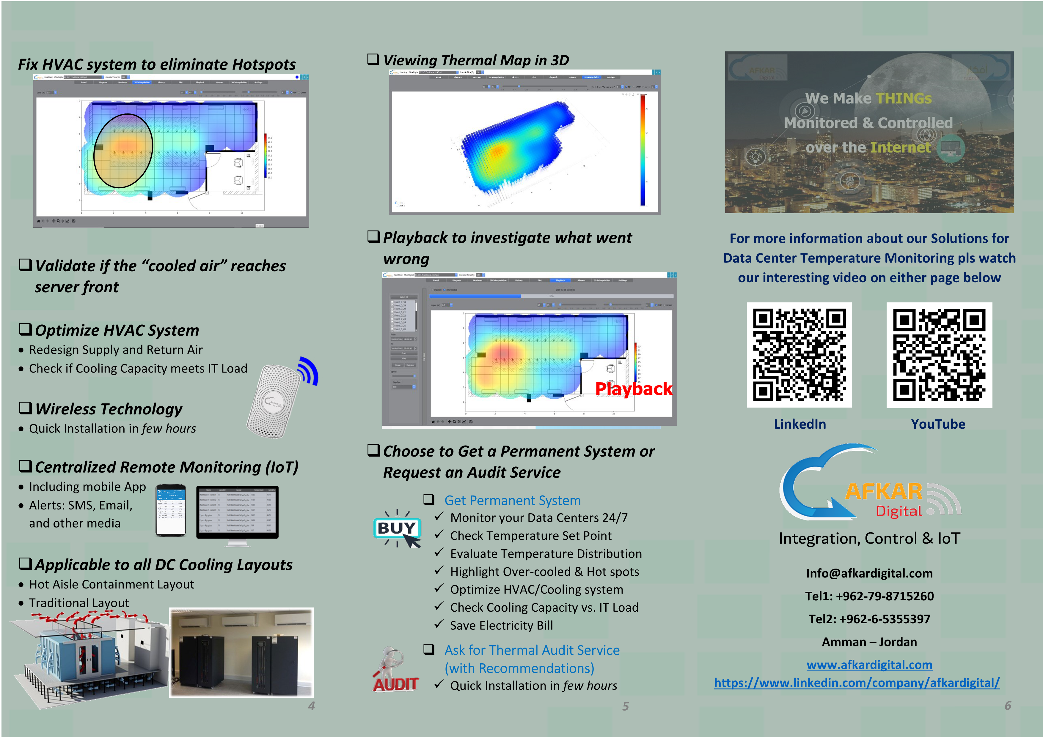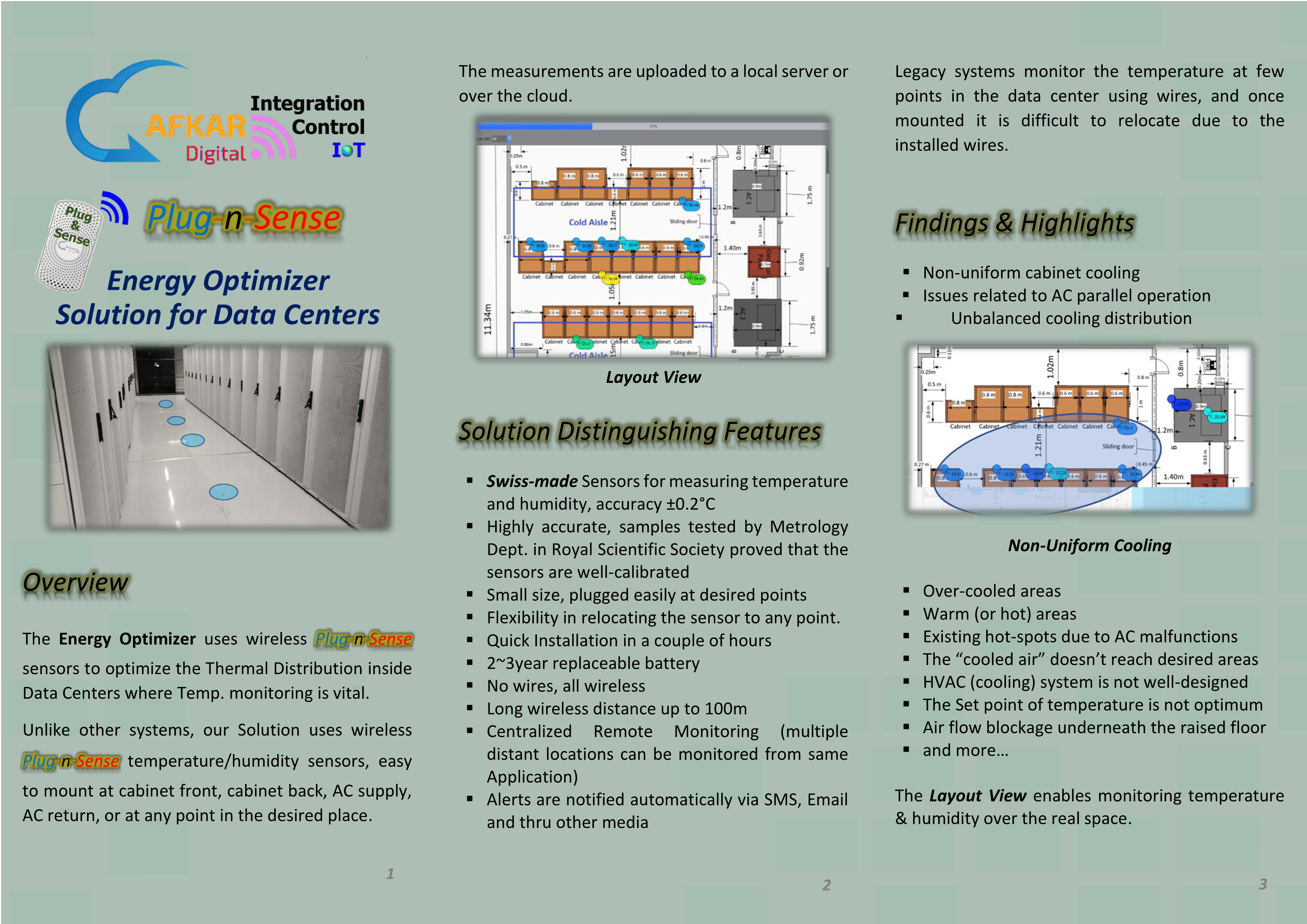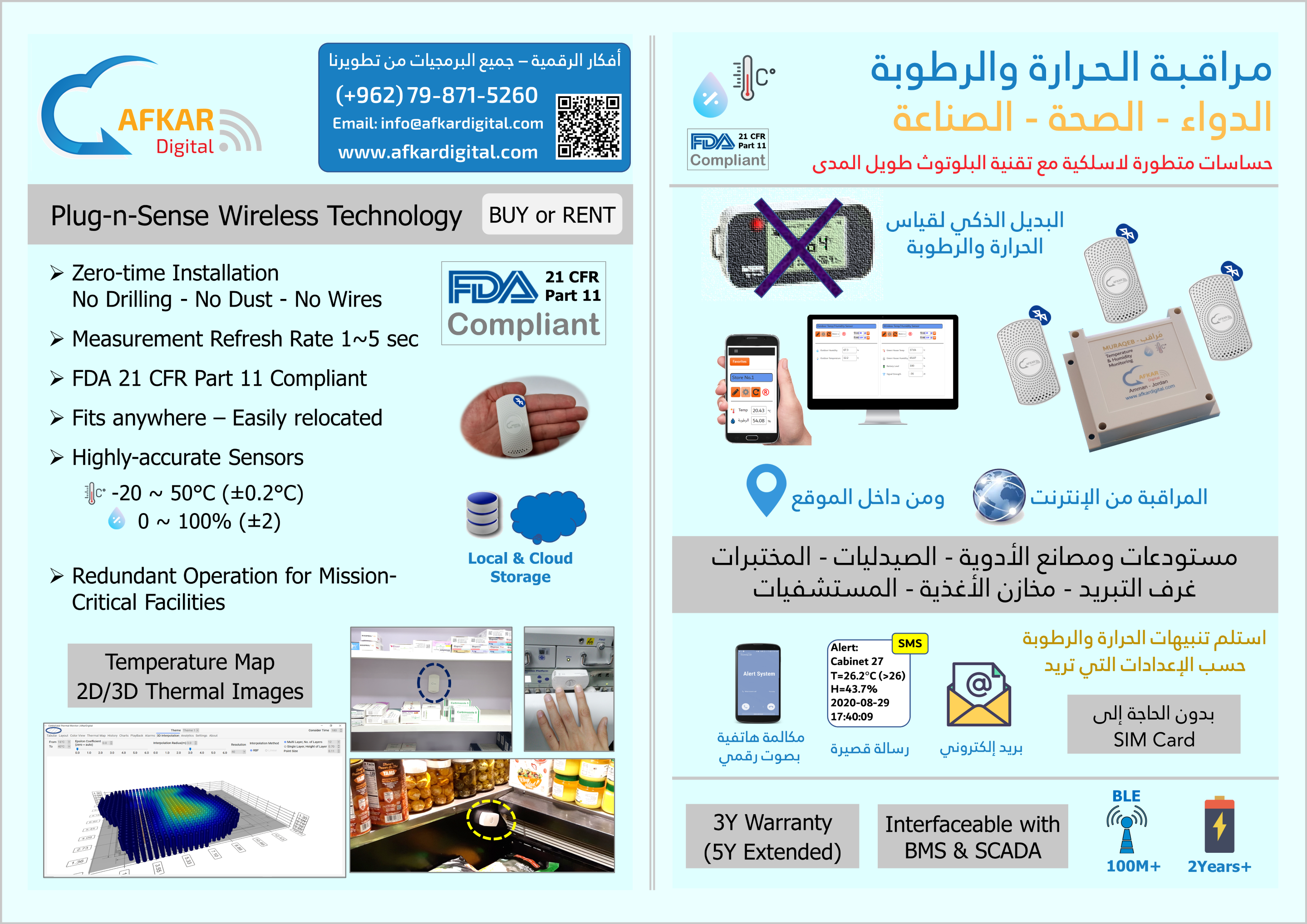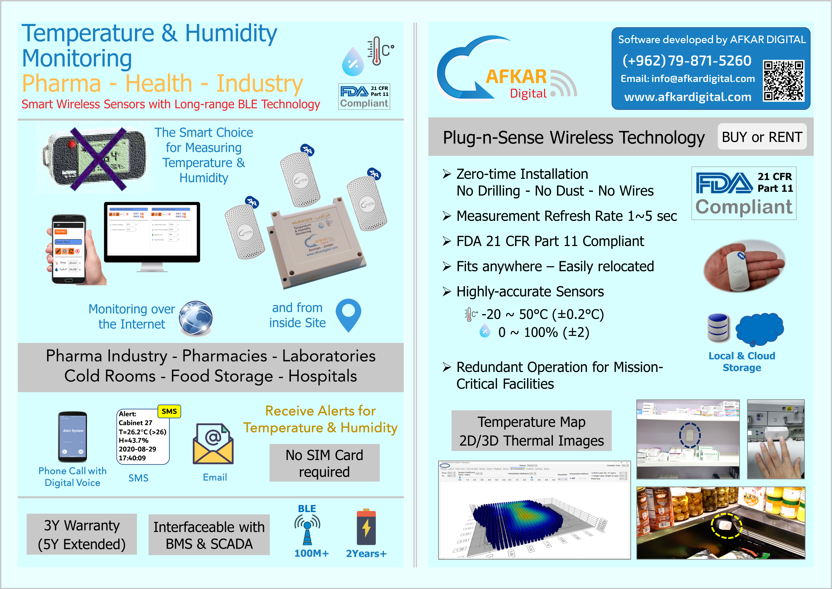 Optimize HVAC System Viewing 2D/3D Thermal Maps Using wireless BLE technology (Temperature, Humidity, Leakage, Door Open) Friendly Installtion: No Drilling - No Dust - No Wires