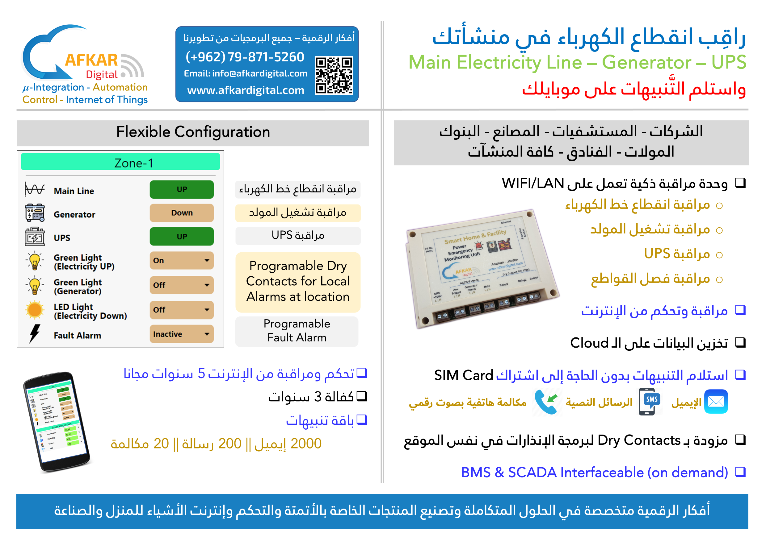 (الكهرباء/UPS/المولد) جهاز الطوارئ الذكي لمراقبة