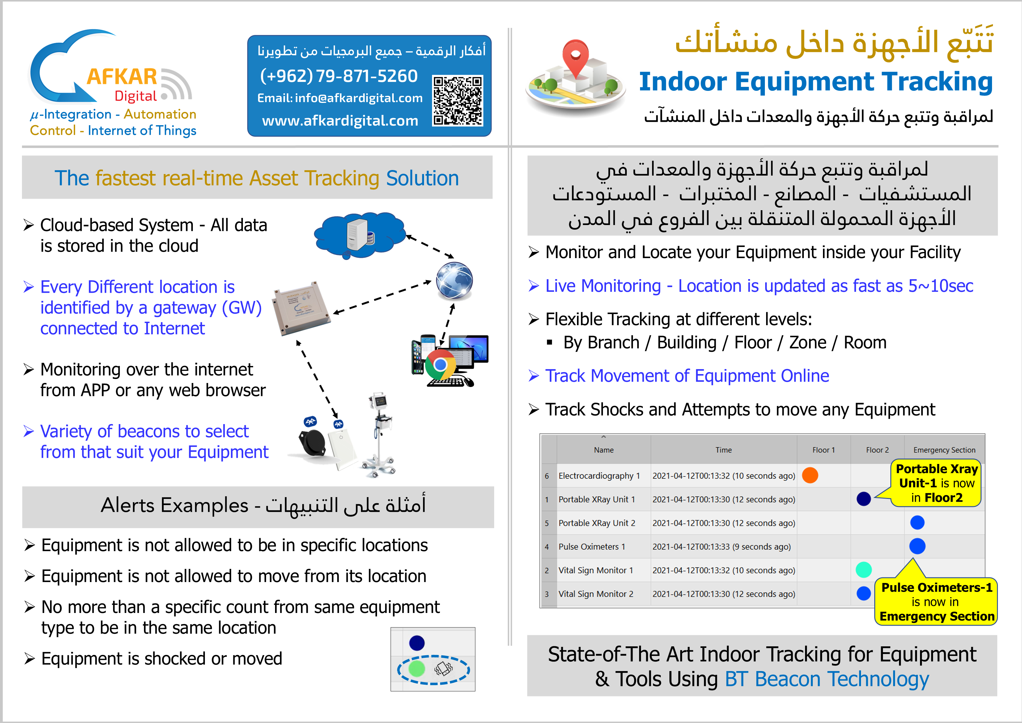 The fastest real-time Asset Tracking Solution Monitor and Locate your Movable Equipment inside your Facility Track Shocks and Attempts to move any stationary Equipment