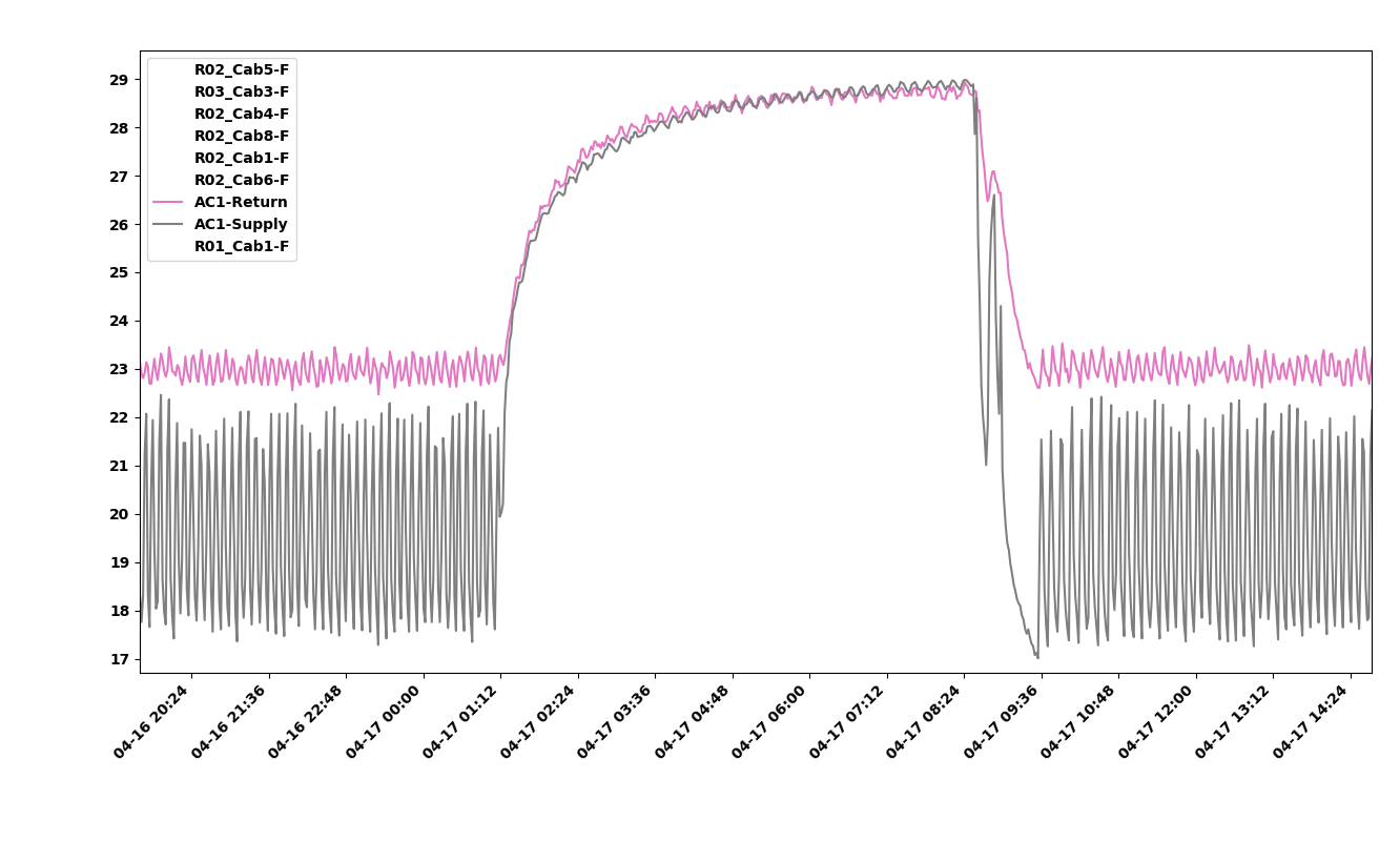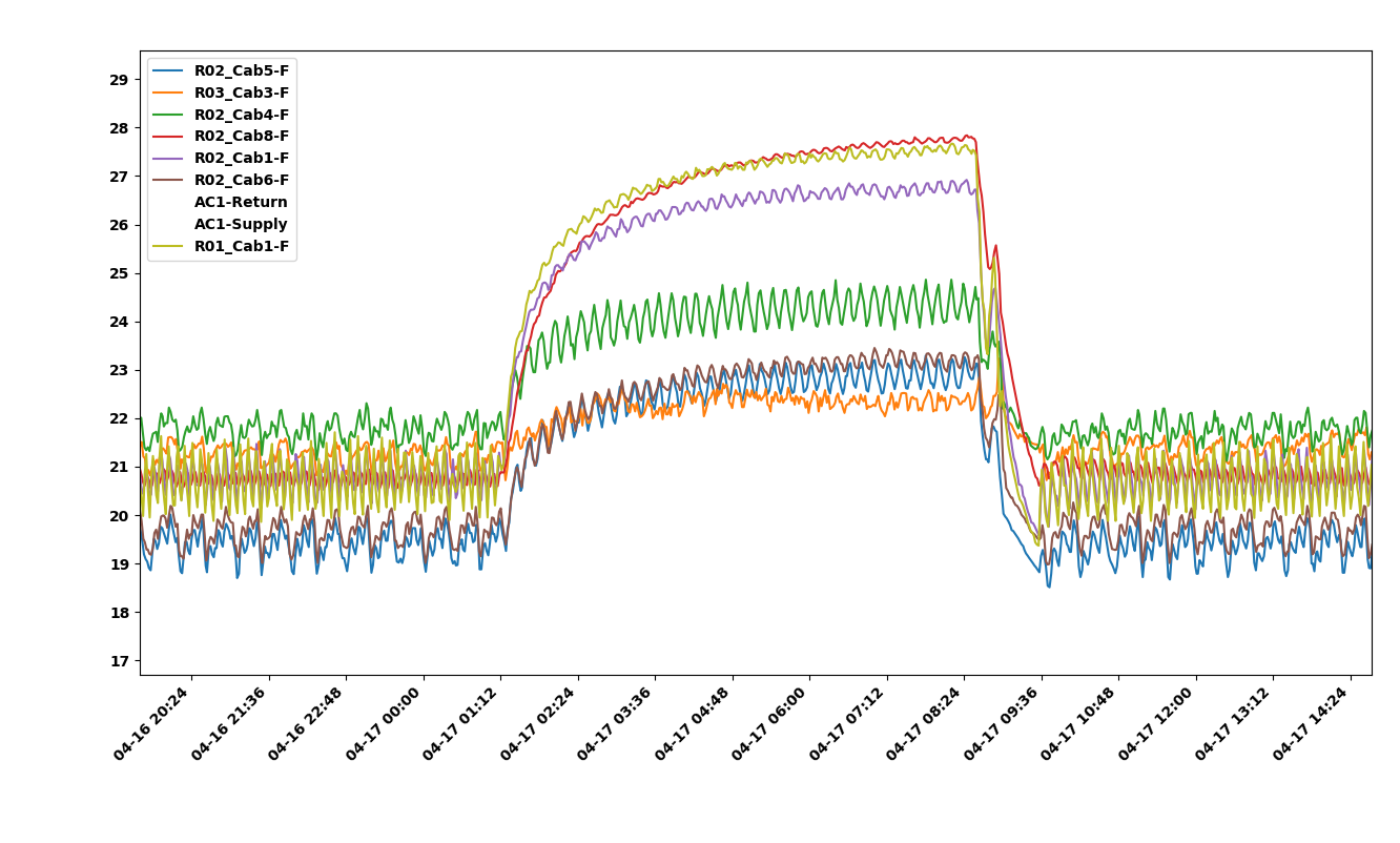 Temperature started to raise gradually until it reached to the level where it triggered the alert thru an automated phone call with digital voice.